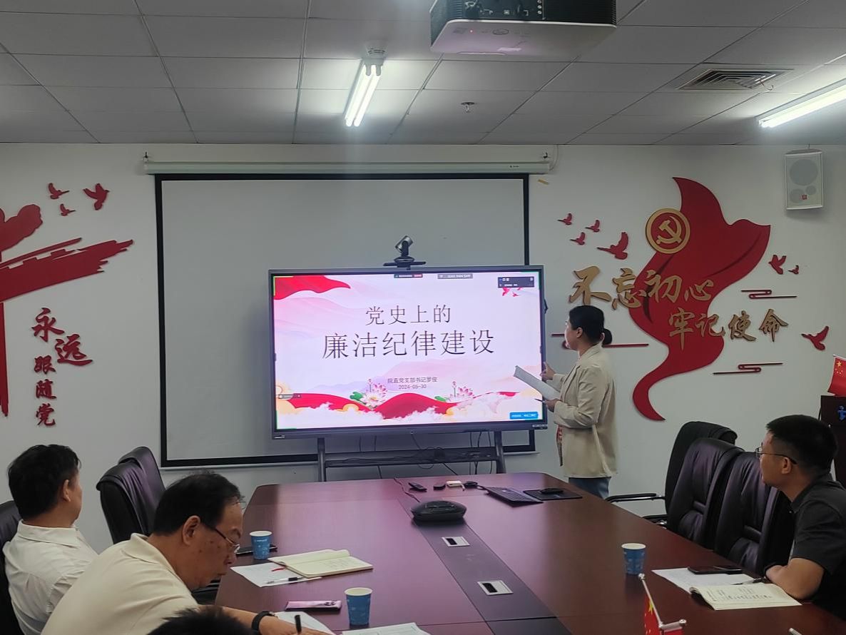 院直党支部书记罗俊以《党史上的廉洁纪律建设》为题,汇报了中国共产党勇于自我革命,坚持反腐倡廉的历程、经验及启示