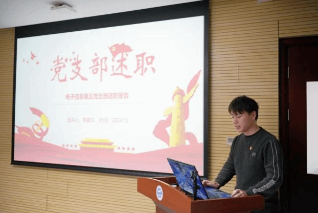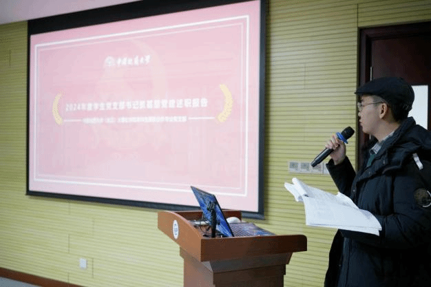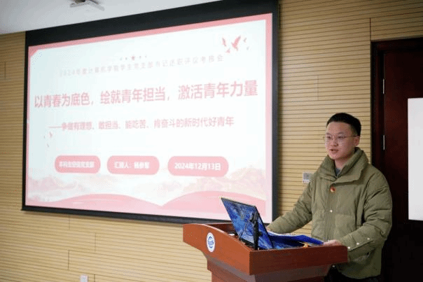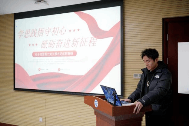 研究生专硕第六党支部书记向晨风谈到:今天很荣幸参加公司党支部书记述职大会,很荣幸上台汇报工作。这不仅是工作汇报,更是向其他党支部书记学习的宝贵机会。教职工支部工作部署有条不紊、成果丰硕。本科生、研二和研三支部百花齐放,各有建树。作为聆听者,我不断学习着他们的管理方法和成熟经验。虽然研一党支部因为成立时间较短,成果不够突出,但在公司党委的正确领导和全体支部成员的积极配合下,我们一定能有所成就。我们作为党支部书记,肩负着同学们的信任,应该切实担负起支部组织管理工作的责任。公司领导们的认可和夸奖是一种鞭策,期许和鼓励着我们带领党支部走向新的未来。