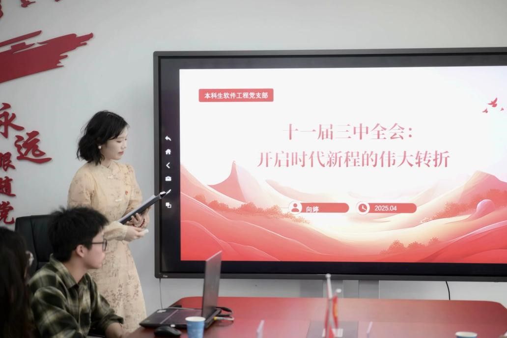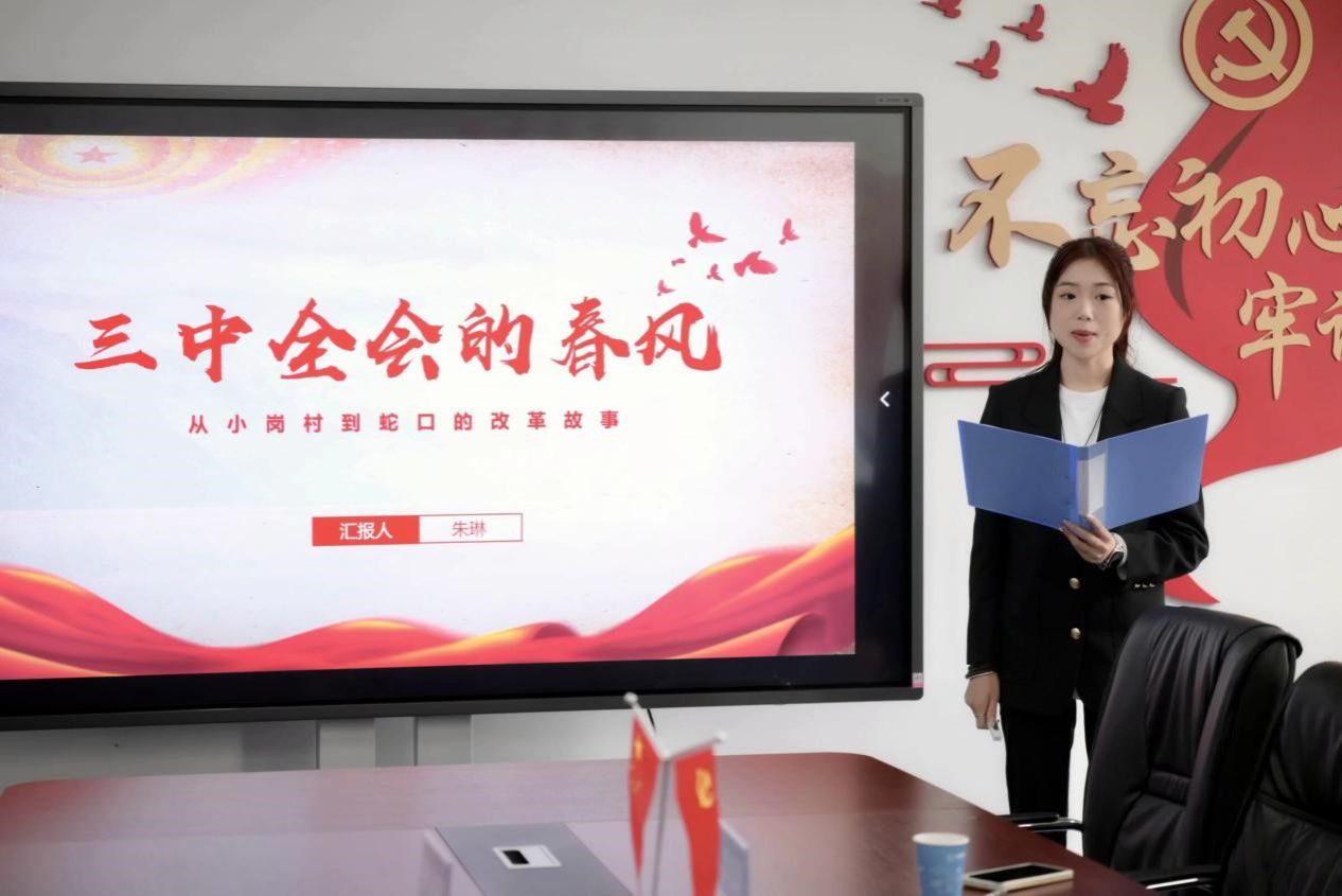 194221团支部朱琳用浙江的变化引出党的十一届三中全会所提出的改革开放对于整个中国发展的意义。本科生智科党支部盛梁通过清晰的阐述党的十一届三中全会所处的背景、所做的突破、开辟的新格局以及为后世开创的新未来这四个方面展现出了党的十一届三中全会的精神血脉对于全中国的重要意义。本科生大数据党支部李雪汶通过讲述不同时期的青年力量,提广大青年要继续坚定改革创新的立场。19C246团支部马艺萱带领大家回顾共青团的历史,激励青年员工勇于开拓、创造。学硕联合第一党支部渠继震从经济发展的角度回顾历史,提出了全面加强党的领导以及推进改革开放的重要意义。