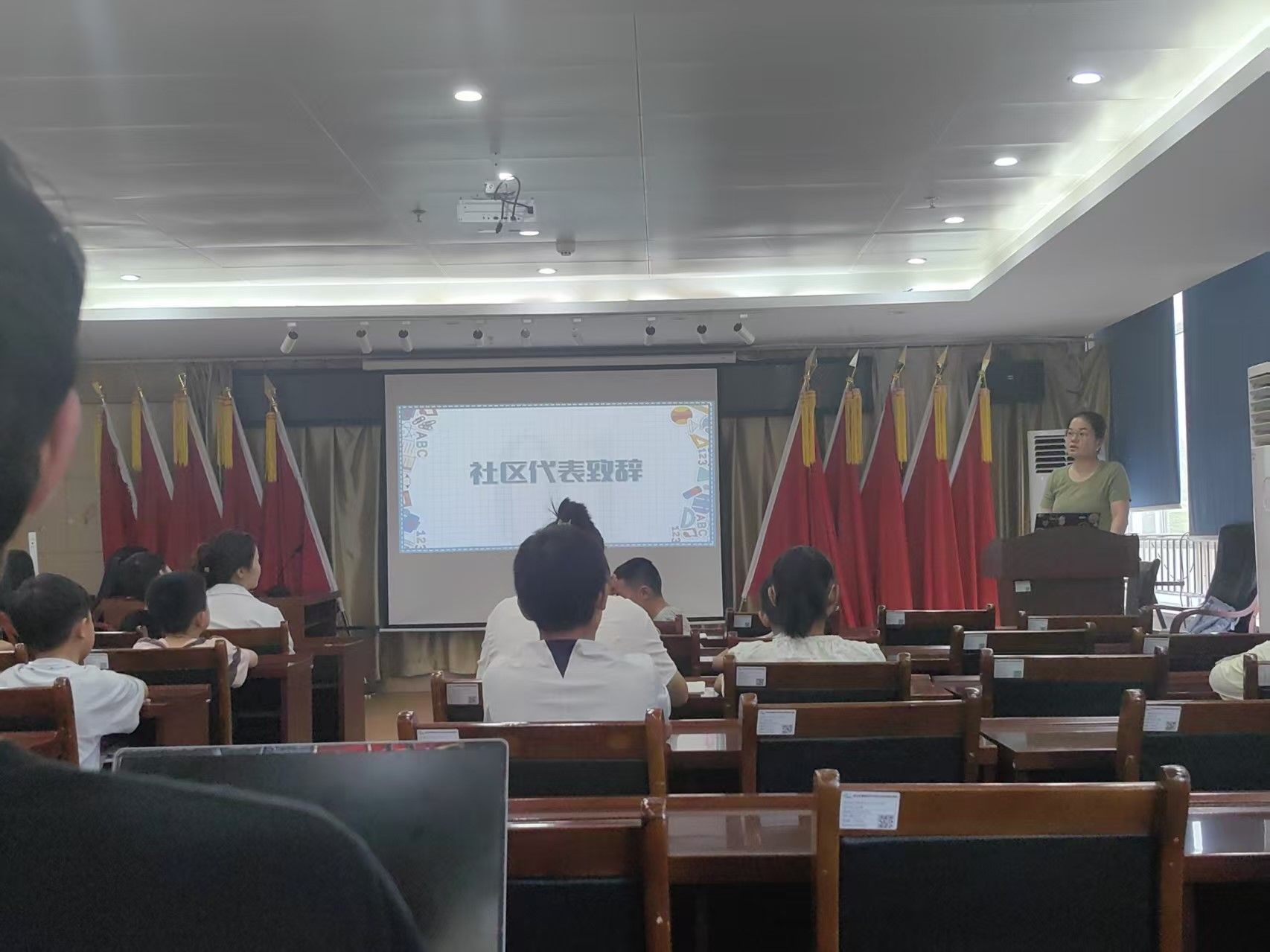 伴随着朝阳的升起,社区青少年与家长们齐聚现场。在简约而有序的布置中,开班仪式如期举行,为接下来的两周志愿托管服务吹响了启航的号角。