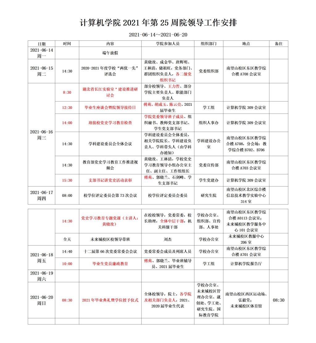 一周安排(第25周,2021-06-14~2021-06-20)
