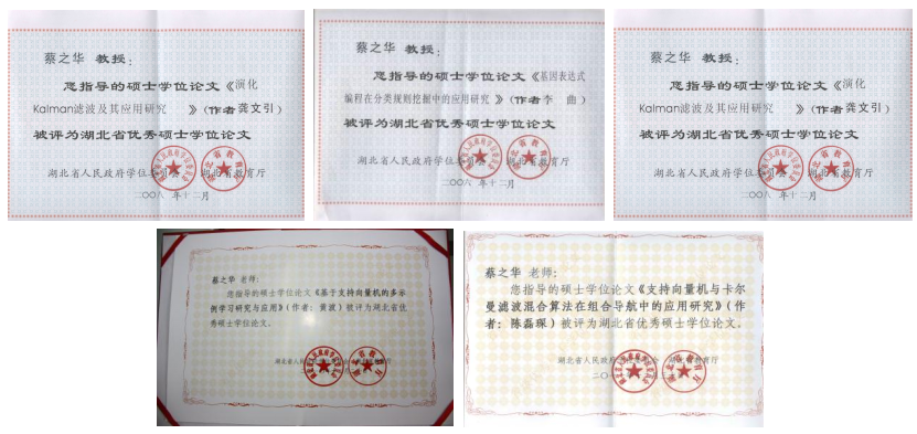 在研究生心目中,蔡之华老师是最好的导师。他们这样评价:“蔡老师不仅用深厚的学识指导学业,还用真挚的情感温暖人心,不仅是学业上的老师,也是生活中的朋友。”蔡老师两次获评公司研究生“良师益友”。蔡老师重视毕业设计过程指导,精益求精,严把论文质量关。在他的指导下,有4名同学获得湖北省优秀硕士论文,1名博士生获湖北省优秀博士论文,8人次获得研究生国家奖学金。到目前为止,蔡之华老师共培养博士和硕士研究生超过百人。指导的员工既有在国内985、211高校破格晋升为教授、在阿里巴巴等知名企业任高级科学家者,也有在国外著名高校任教、Twitter及IBM等公司任高级专家者。
