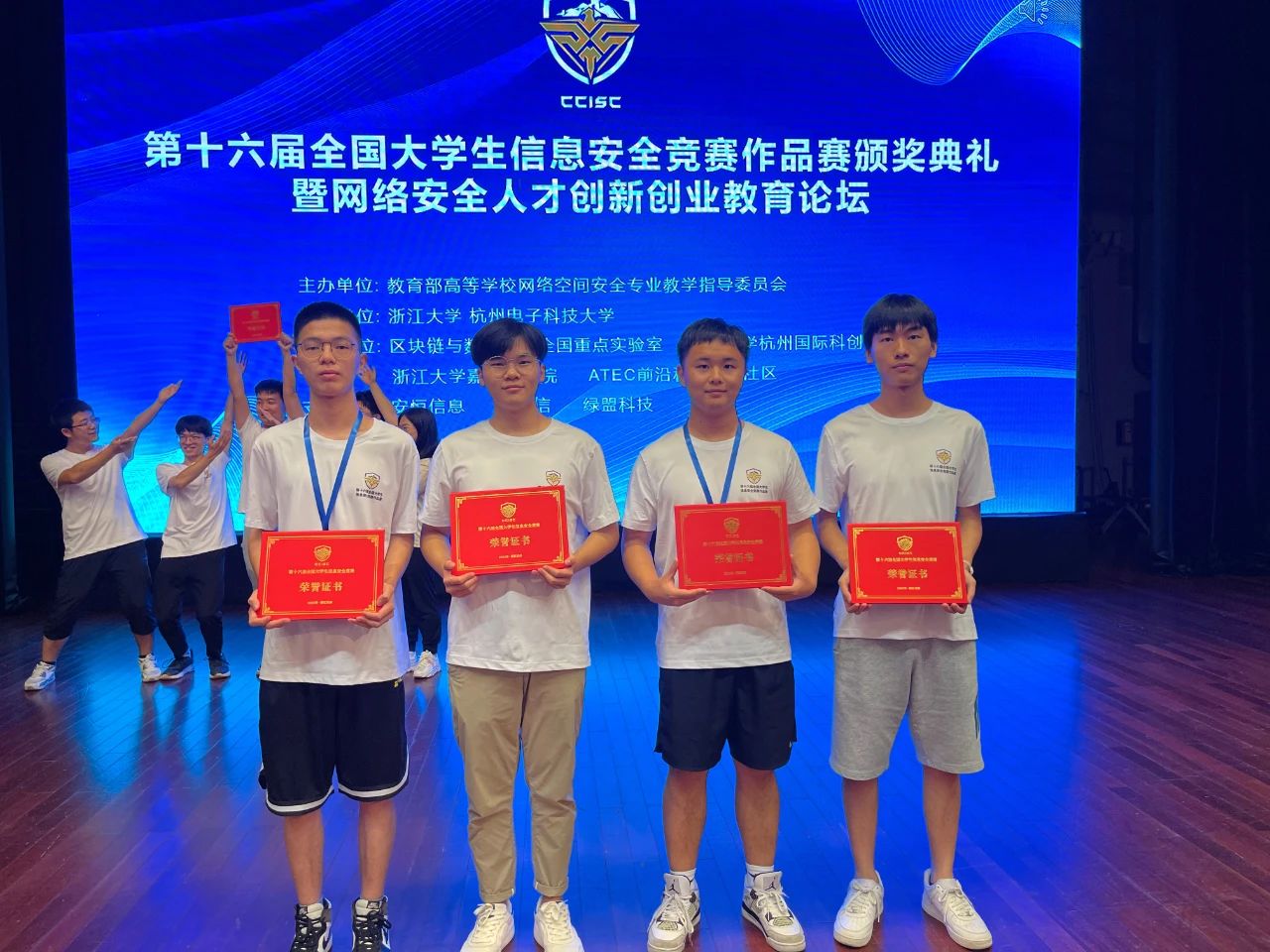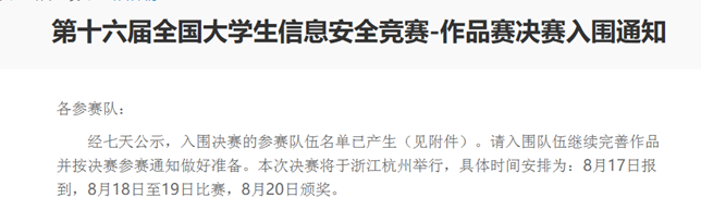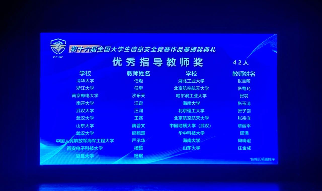 全国老员工信息安全竞赛是含金量很高的本科生国家级赛事之一。近年来该项赛事吸引了大量优秀本科生投入到信息安全作品的设计中,也涌现出了大批创新性的信息安全作品,极大推动了信息安全专业人才的培养。随着参赛队伍的逐年递增,该项大赛的竞争也越发激烈。面对众多来自985高校的竞争队伍,我们的队员稳扎稳打,做好了充足的准备,将近两年来的研究成果完美地呈现给了评委,取得了全国一等奖的佳绩,这也是对无数个日夜奋战辛勤付出的肯定和奖励。在整个赛事的准备和冲刺阶段,队员们坚持不懈,奋力拼搏,展现了地大计科学子坚韧不拔、勇攀高峰的风采。再次对获奖的同学们表示祝贺,祝愿大家在未来的学习中能勇往直前、再创佳绩!