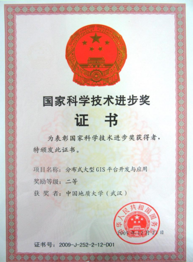 “十一五”期间,提出新一代GIS应用理论体系,建立了统一时空框架下数据、功能和服务全共享模型,率先推出数据中心集成应用平台MapGIS K9,实现了空中、地上、地表及地下的多维地理空间信息可视化表达、管理、分析与应用。该成果实现了GIS应用从传统应用模型向业务知识模型的转变,为我国GIS应用普及提供了新技术、新方法。利用该成果可快速构建国土资源、智慧城市等领域的复杂GIS应用,研制周期缩短50%-80%。该成果获得国家测绘局地理信息科技进步一等奖(2010年)。