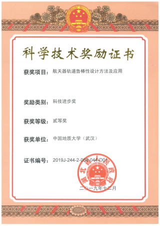 团队在航天器初轨设计中,对传统的圆锥曲线拼接法进行了深入的分析,引入多参数演化技术,克服了先设计日心转移轨道再推演出逃逸轨道和捕获轨道的设计方法效率不高的问题,创新了初轨设计的演化圆锥曲线拼接法;在精确轨道设计阶段,充分考虑到数学模型的强非线性特征,从设计合适微分修正步长和改善线性收敛域两个方面,创新了精轨设计的逐次逼近打靶法,解决了精轨设计初值敏感性问题,极大地提高了精确轨道设计算法的鲁棒性;以轨道鲁棒设计为基础,研制出了具有完全自主知识产权的航天器轨道优化设计平台。研究成果“航天器轨道鲁棒性设计方法及应用”获得2019年度湖北省科技进步二等奖。