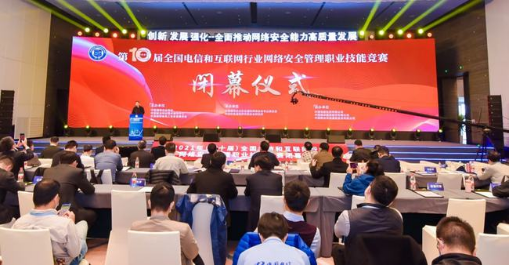 竞赛闭幕仪式暨颁奖礼在“2021年(第十一届)电信和互联网行业网络安全年会”主论坛上举行。工业和信息化部网络安全管理局局长隋静、湖北省通信管理局局长吴俊、中国国防邮电工会全国委员会副主席黄敬平、中国信通院副经理魏亮、中国通信企业协会副秘书长赵俊湦出席闭幕仪式并致辞。来自全国31个省、自治区、直辖市通信管理局、省通信行业协会、基础电信运营企业、互联网企业、网络安全企业和科研机构、高等高职院校等相关单位的领导和代表以及参赛选手近400人参加闭幕式。