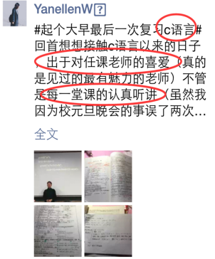 做让员工喜欢的老师,上让员工喜欢的课,这可能是每一个老师追求的梦想。“亲其师”之后,“信其道”和“乐其学”通常会接踵而来。“C语言就是我最喜欢的课程”,工程公司21级新生郭云青说。很快马老师发现,朋友圈里有很多帖子,它们都有一个共同的关键词:抢座位,有越来越多的同学开始不再惧怕“C语言”,反而提前两三个小时来教室占座了。“明晚想看湖南卫视跨年演唱会,还想看公司的晚会,想玩游园嘉年华,然而我也不忍心翘‘C语言’,真是难过”2015年12月31日跨年夜的晚上,有员工发出了这样的感慨。那晚正好有两节《C语言》课,马老师原以为那晚可能会有很多同学请假甚至旷课,没想到大家全都坐在了教室里,那年公司校报和官微在新年的第一天同时刊登专题报道: 跨年夜地大老师用C语言献祝福。2016年的某一天晚上,北综突然停电,教室里一片漆黑。马老师说:“哗然过后,正当我不知所措的时候,同学们竟齐刷刷地举起了手中的手机,打开电筒,照亮了教室,也照亮了我的心,那节课我们就在这道别样的光芒中坚持上完了,这道光芒,属于教室中的每一个人,令我终生难忘。那些所谓的流量明星面对荧光棒时的感觉不过如此吧,当老师,其实很幸福,值得了。”