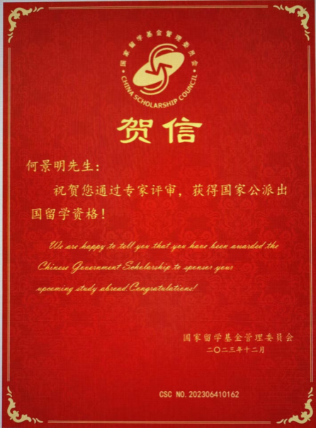 何景明同学表示,能够获得这一难得的机会,他感到非常荣幸和自豪,他会更加努力,加倍珍惜,为国家和母校的发展贡献自己的力量。